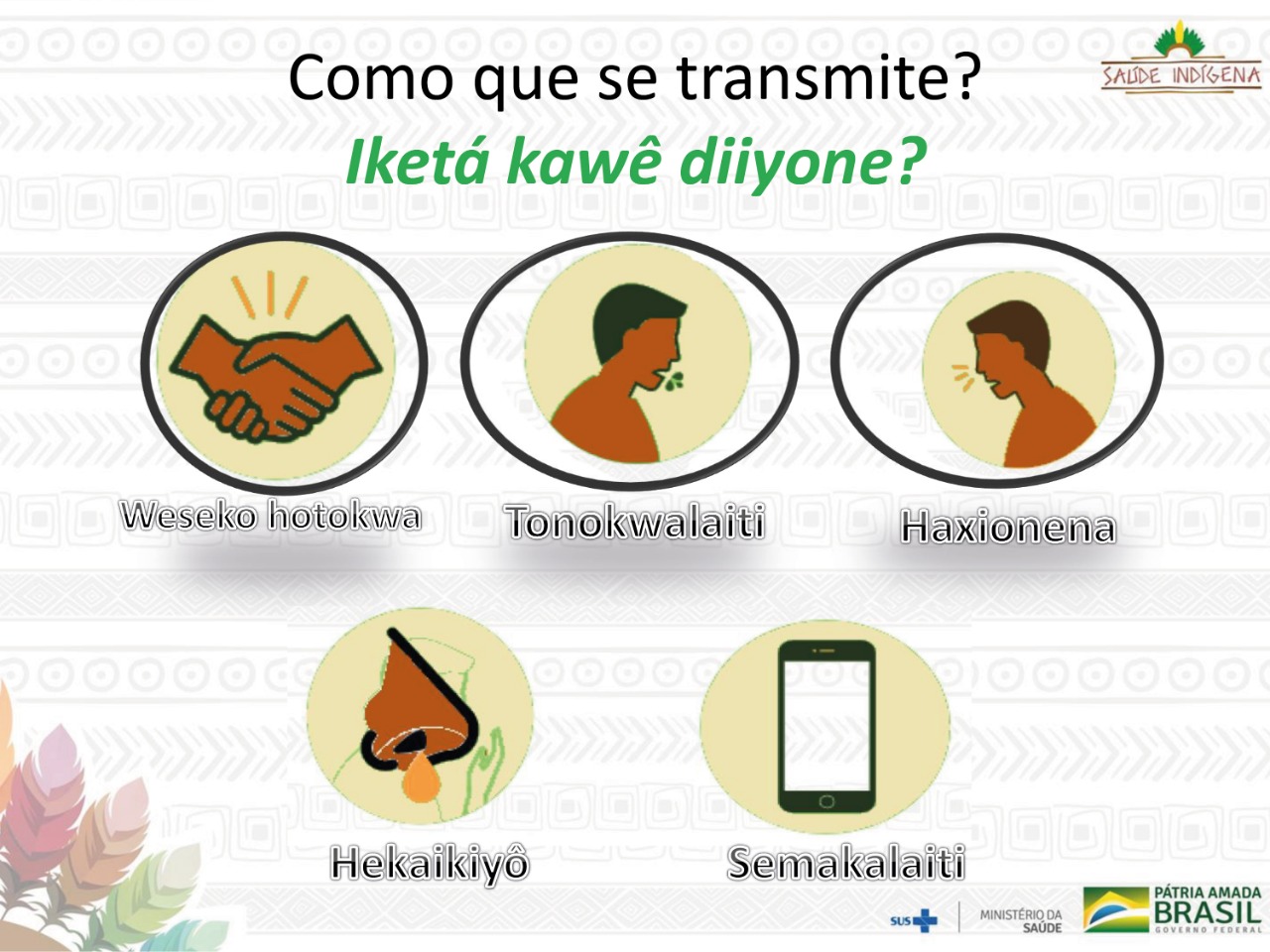 Com intuito de informar esses indígenas sobre a COVID-19, o Distrito Sanitário Especial Indígena (DSEI) de Cuiabá (MT) elaborou uma cartilha com a língua materna da comunidade para alertar sobre os cuidados e medidas preventivas que devem ser adotadas contra o coronavírus.